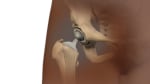 slide 3 of 6, Removal of cartilage from the hip socket and femur,