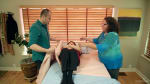 Let the person take off the robe (or uncover the areas to be bathed) but give help if they need it. Remember to use the back of your hand to test the water to make sure it's not too hot or cold. You don't have to wear gloves, but it might be a good idea if the person has been vomiting or has had diarrhea. And it's a good idea to wear a mask if you or the person has an illness that can spread, such as a cold or the flu.