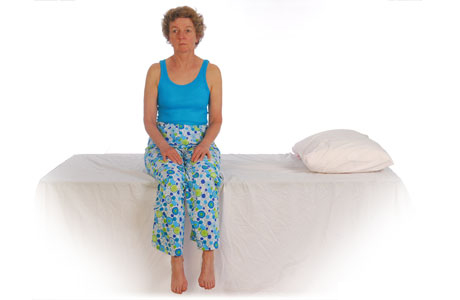 - Sit up straight on the side of the bed.