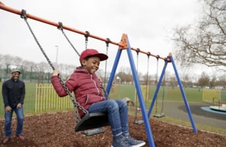 New activities can be hard or even scary for kids. Think of games that will bring everyone to the same level during the activity—like follow the leader. And if your kids fall down, don't be afraid to fall with them.
