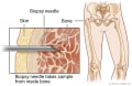 - The doctor will put a long, thin needle through the skin into the bone. Then your doctor will remove a small amount of bone through the needle.