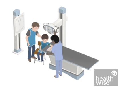 Scoliosis testing usually starts with questions about the child's past health, plus a physical exam. The exam includes a simple test to see if the child's back or ribs are even. The child bends forward at the waist, arms hanging loosely and palms touching. If one side is higher than the other, an X-ray of the spine may be done. A scoliometer can be used to measure and estimate the rotation of the spinal curve.