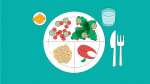 Protein. This comes from foods such as meat, poultry, seafood, eggs, beans, peas, soy products, nuts, and seeds. Adding a little protein that is low in saturated fat to each meal and snack can help you feel full longer.